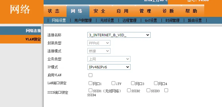 # 电信F450G桥接使用自己路由拨号获取ipv6地址